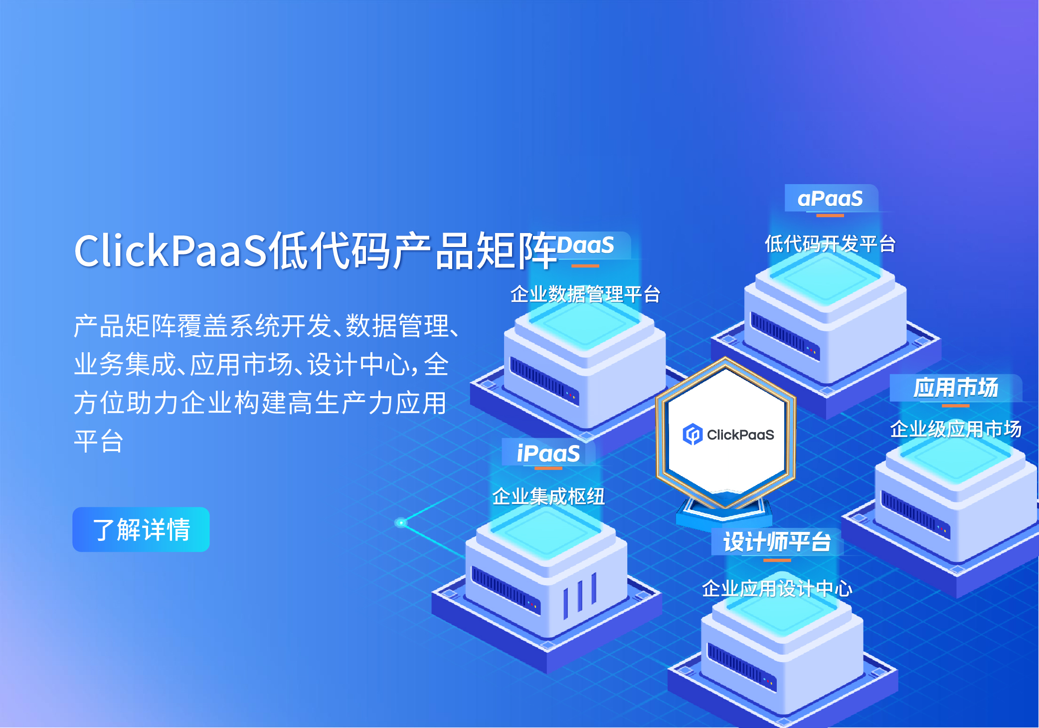 ClickPaaS采用模型驅動開發方式,通過業務模型、數據模型、頁面模型、流程模型、集成模型、報表模型實現圖形化和可視化的配置,實現從業務故事分析到應用系統落地;立足于工業、政務、金融等行業,構建領域模型,沉淀行業組件和專用算法,將領域最佳實踐結合可落地產品,助力中大型企業數字化升級。